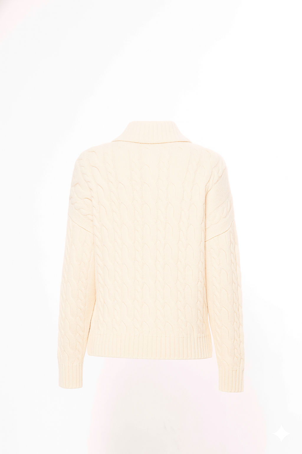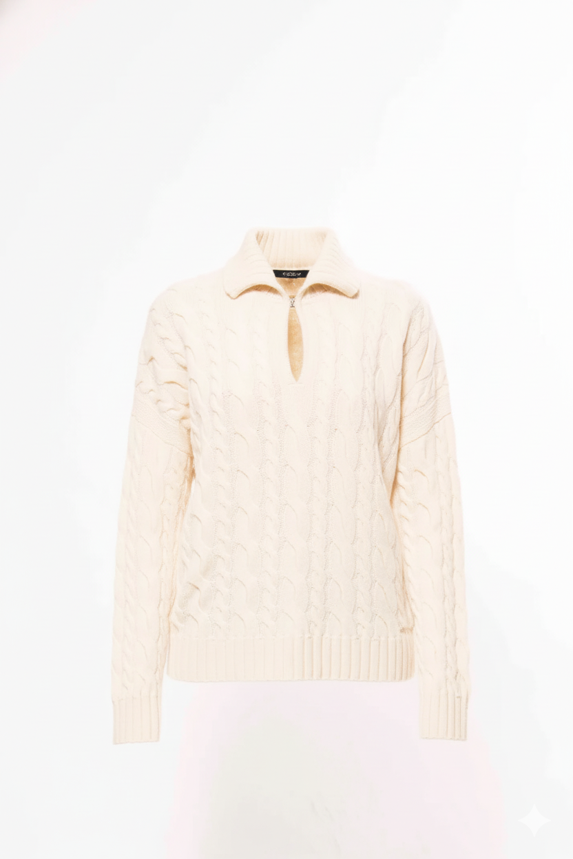 Objevte náš elegantní krémový dámský svetr z 100% kašmíru – esenci tichého luxusu. Tento jemný kousek s vyšším límcem vás spolehlivě ochrání před zimou, zatímco jeho měkká textura doslova hýčká pokožku. Nadčasový střih s lehce spadlými rameny a jemně zvýrazněným výstřihem působí nesmírně žensky a sofistikovaně. Odstín jemné cappuccino béžové evokuje klid, čistotu a old money styl – decentní, a přesto nepřehlédnutelný. Tento luxusní svetr nejen zahřeje, ale také pozvedne každodenní chvíle na úroveň tichého rituálu. Dopřejte si ikonický kousek, který se stane pilířem vašeho šatníku.