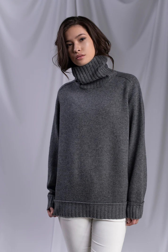 Zpomalte. Nadechněte se. Buďte tady a teď. Tento šedý kašmírový rolák je víc než jen svetr – je to vaše pozvánka k okamžiku čistého klidu a návratu k sobě.